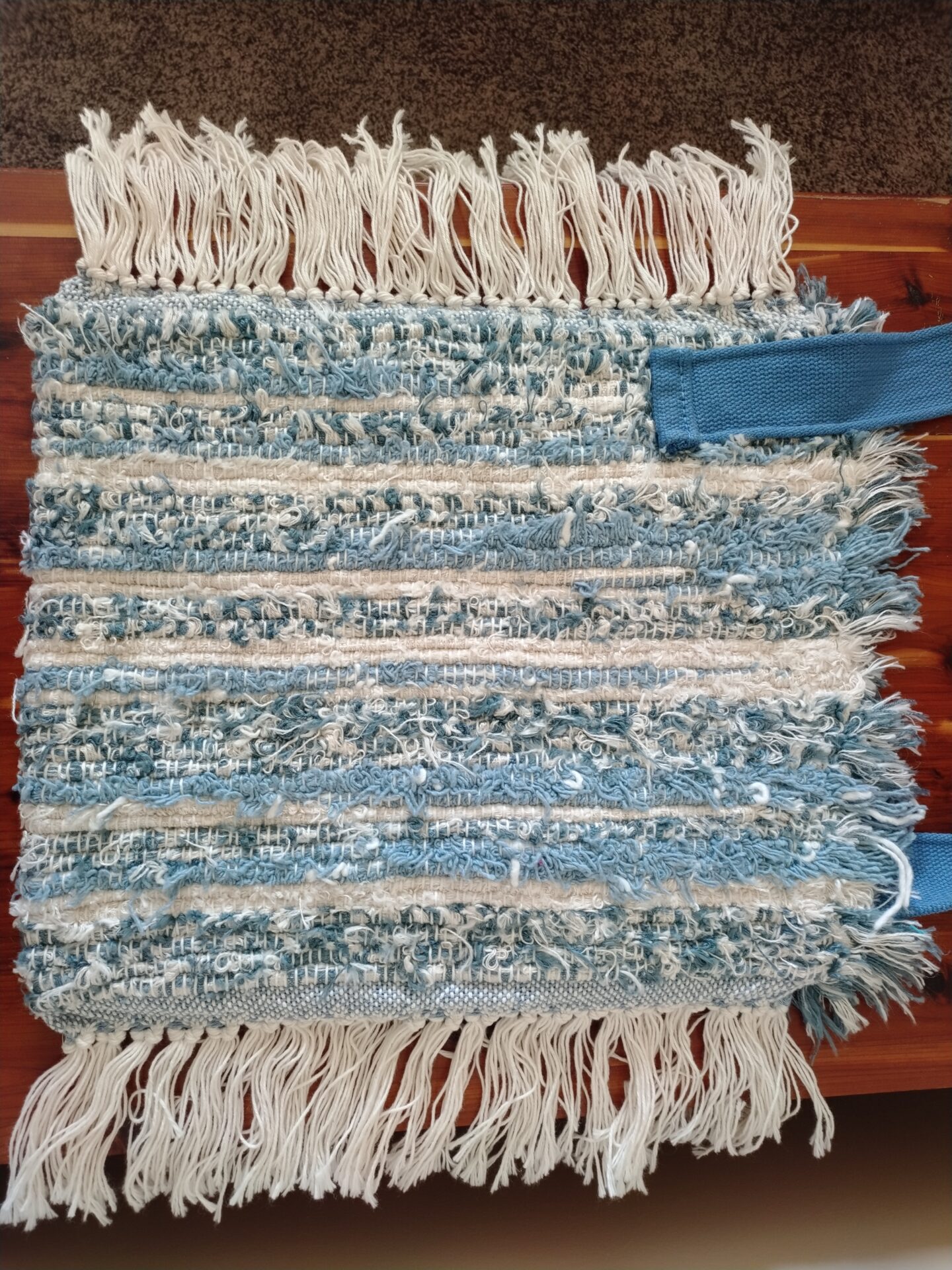 Weft materials: re-purposed poly-cotton upholstery selvedge