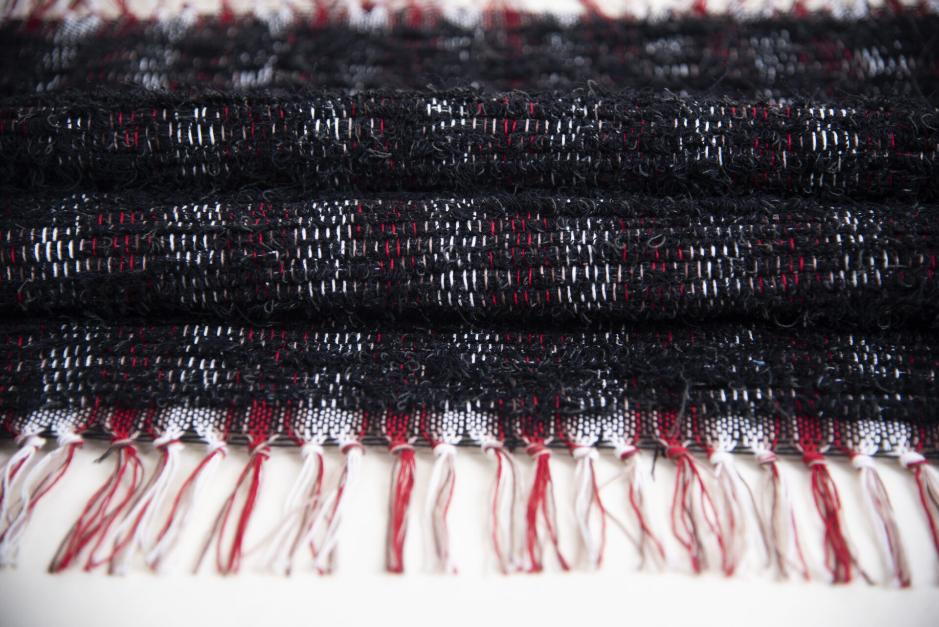 Weft materials: re-purposed poly-cotton upholstery selvedge