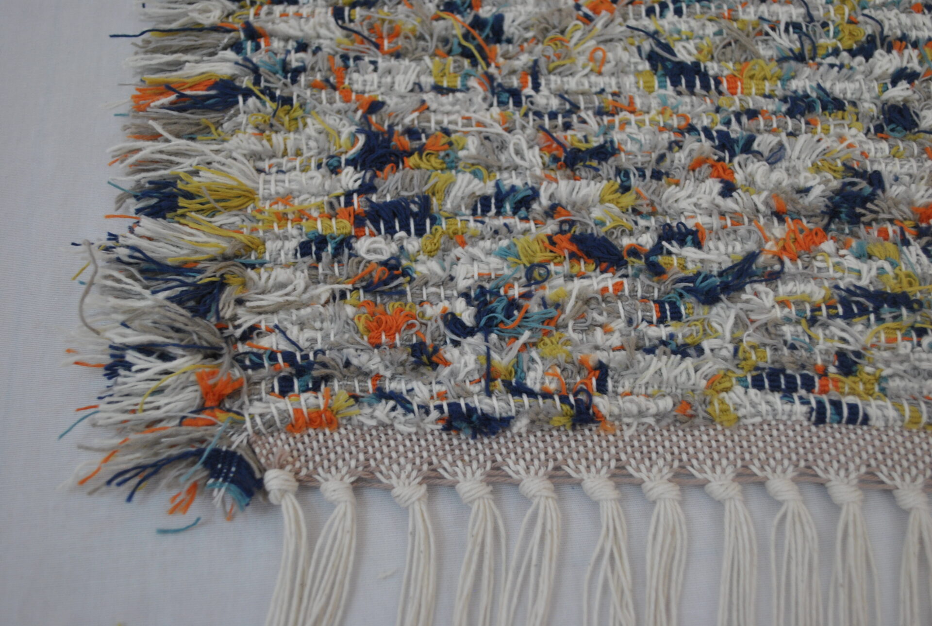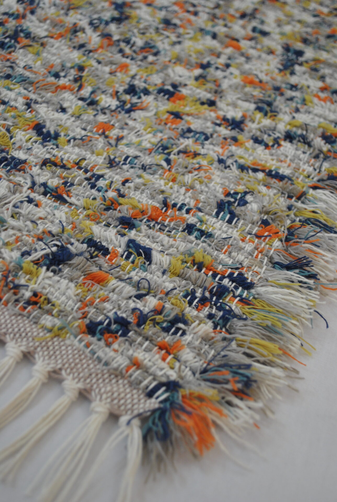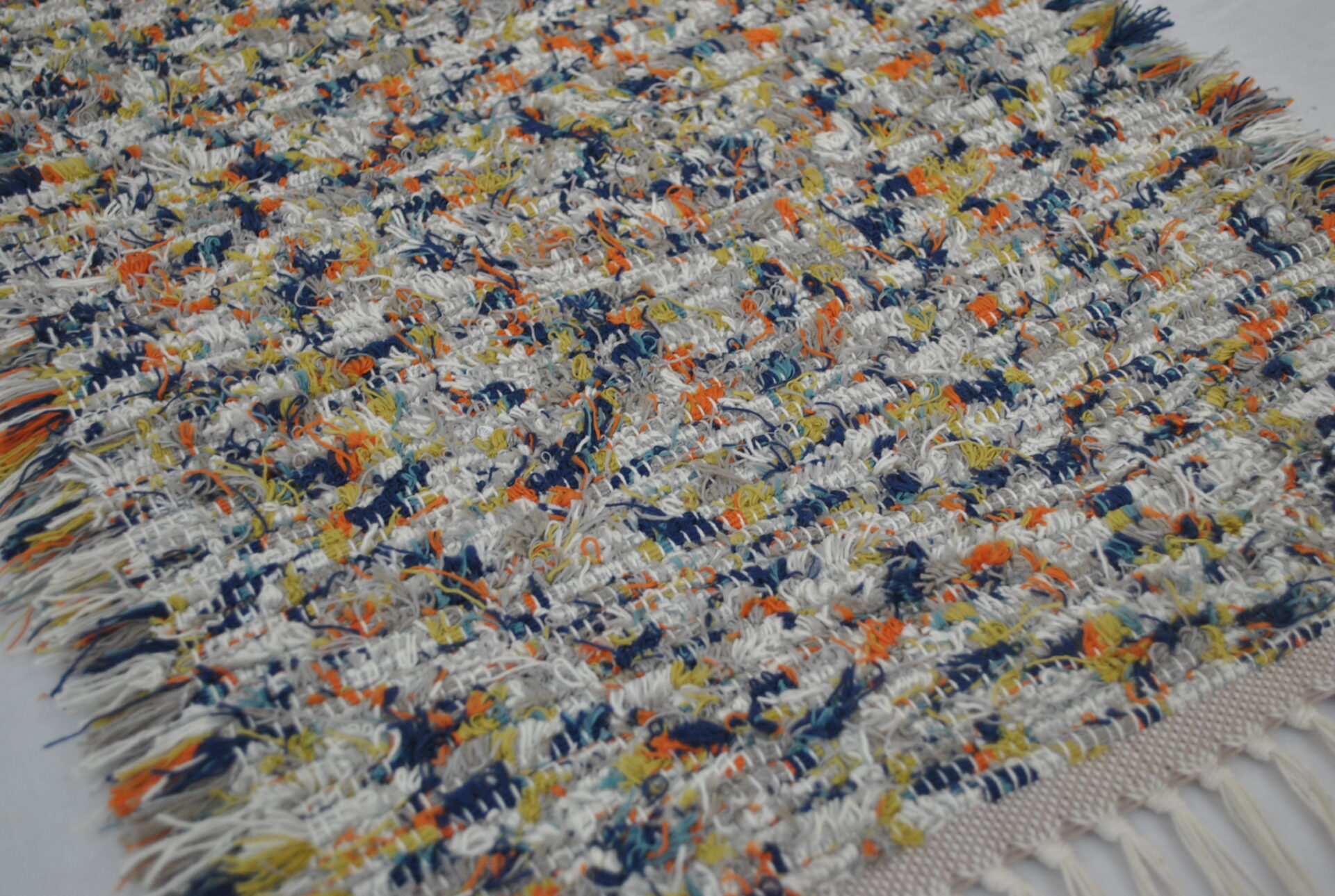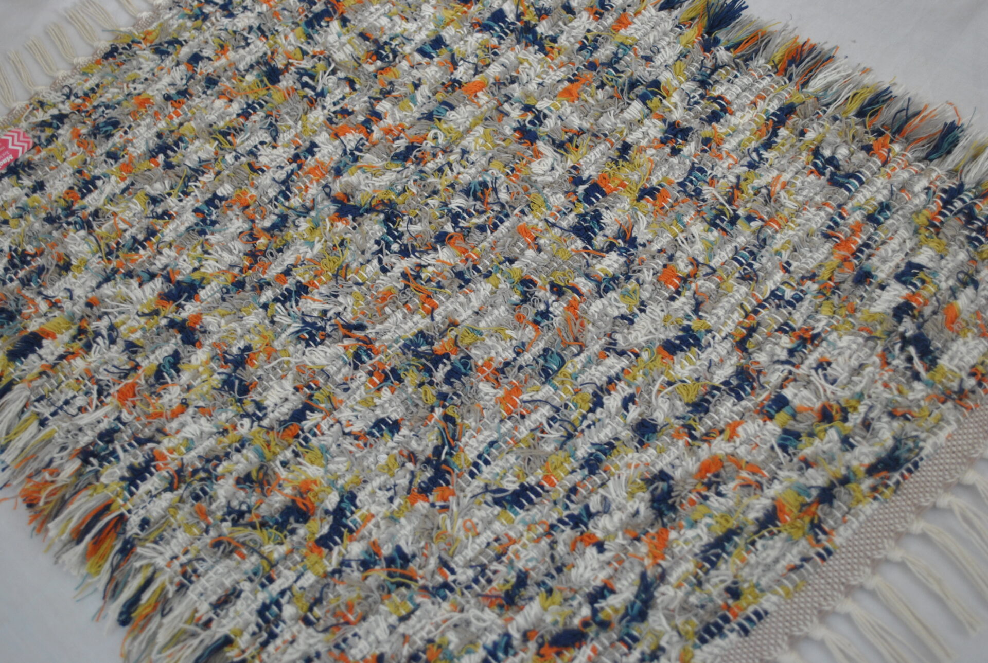 “Upholstery Selvedge” is a waste product from the industrial upholstery fabric supply chain where the discarded edges of commercially-made upholstery fabric that cannot be used in furniture manufacturing are sold in bulk to rug supply shops. It is highly durable, colour-fast, made with current home decorating colours, and available in a variety of soft textures. Making woven goods from this excess material turns something useless into a functional and fashionable home decor item and saves our earth from housing more garbage.